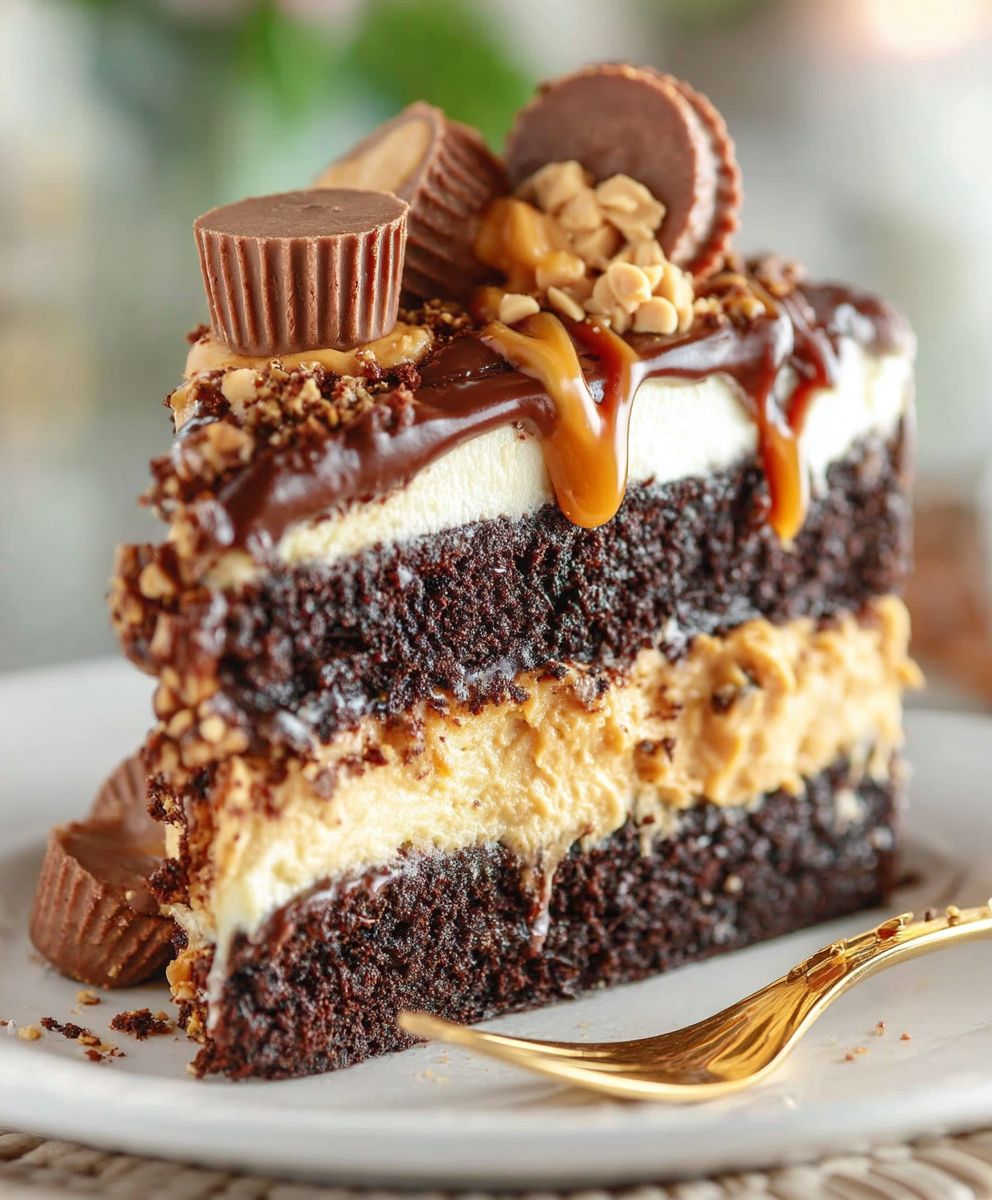 Peanut Butter Chocolate Layer Cake with Reese’s Cups – Ultimate Dessert