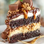 We conquered the challenge of creating a spectacular chocolate peanut butter dessert that is worthy of any celebration. This recipe guides you through creating intensely moist chocolate layers, whipping up the rich, yet airy, peanut butter frosting, and finishing it all with a professional, glossy chocolate ganache and generous candy topping. Achieving this level of baking success relies on ensuring your ingredients are at the correct temperatures and cooling the layers fully before assembly. Whether you are hosting a grand party or simply seeking to elevate a quiet weekend, thisPeanut Butter Chocolate Layer Cake with Reese’s Cups – Ultimate Dessertguarantees satisfaction and admiration. Go ahead, grab your mixing bowls, and prepare to bask in the glory of the perfect layered confection.