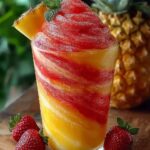 Summer has a way of turning us all into desperate seekers of coolness. You know the feeling: the asphalt shimmer-dancing, the fan doing its best impersonation of a jet engine, and your brain begging for an ice bath. Forget the lukewarm lemonade and the sad, melted ice cream. What we truly crave is a dazzling, vibrant antidote to the heat, a drink that doesn’t just cool you down but transports you to a hammock strung between two palm trees. This is where the magic of a homemade slushy truly shines, particularly one that offers a glorious, fruity escape from the mundane. We’ve all had those moments, haven’t we? Standing in front of the fridge, eyes scanning for inspiration, only to find the usual suspects. But then, a flicker of an idea – what if we combined the tangy zest of pineapple with the luscious sweetness of strawberries? What if we spun them into an icy vortex of deliciousness, creating a visual feast as well as a taste sensation? It was a summer afternoon daydream that quickly became a mission, and honestly, a wildly successful one. This drink isn’t just about ingredients; it’s about crafting a moment of pure, unadulterated joy that can be savored sip by glorious sip. It’s the kind of beverage that makes you close your eyes and genuinely forget about your to-do list for a moment.